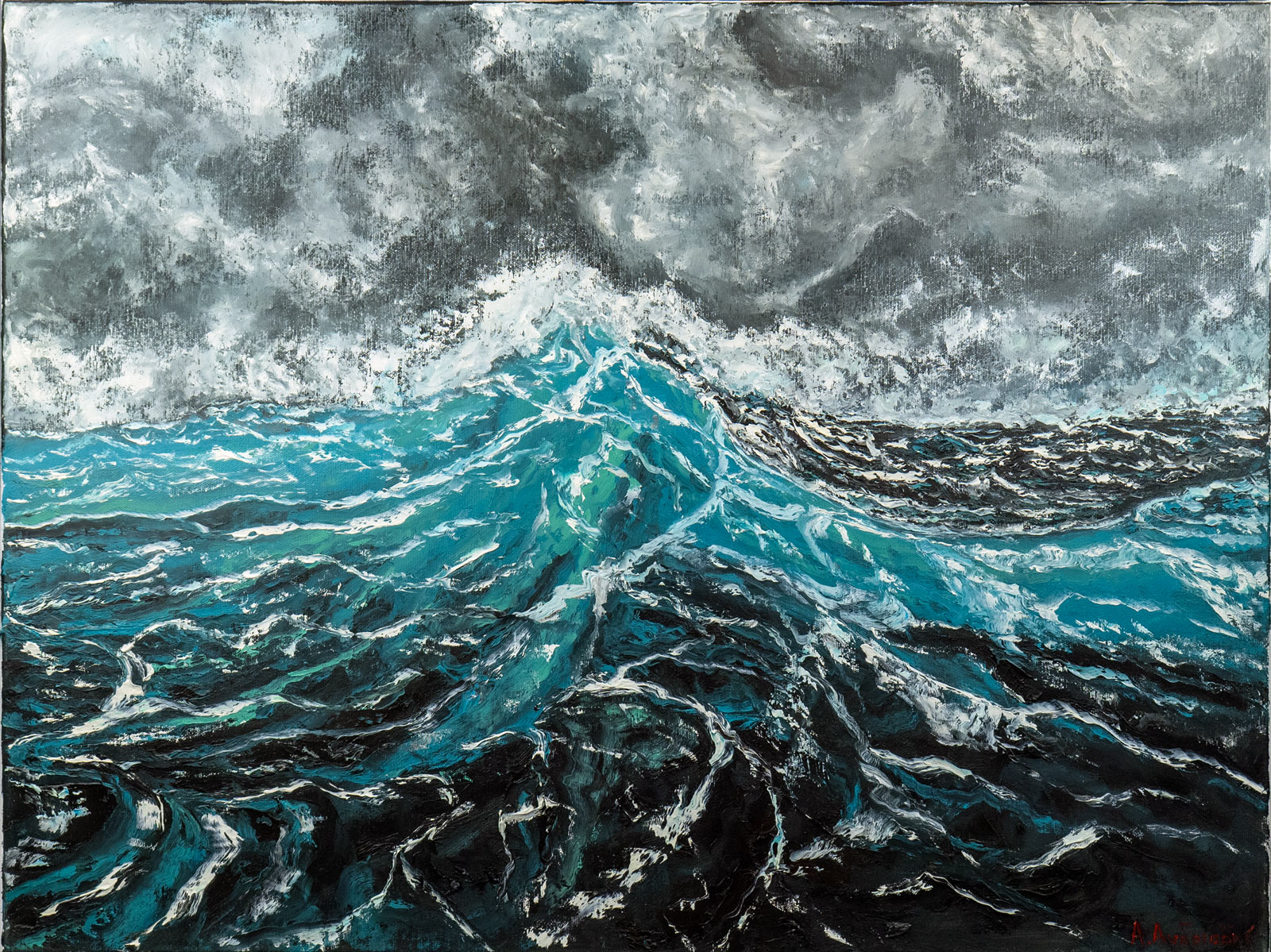 Feel the power of the Greek sea at its peak. This work captures the Aegean Sea in a moment of intensity and passion, where deep blue clashes with the white of the sea foam. A painting that does not merely depict the sea, but the very soul and untamable nature of the Greek waters.